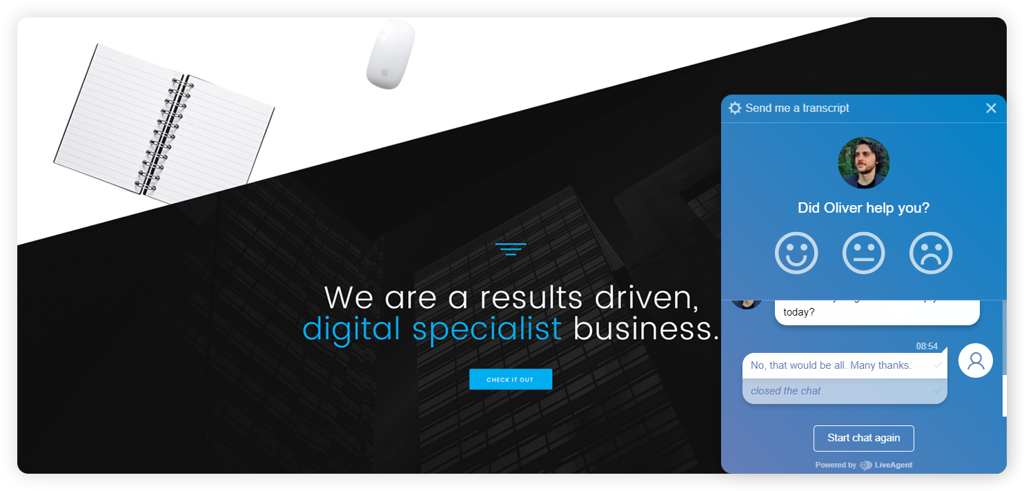 ما يجعل برنامج الدردشة من LiveAgent تجربة شخصية هو أنه يتم تشغيله بواسطة ممثل بشري بدلاً من روبوت الدردشة. وبمجرد تقديم أسمائهم، يمكن للوكلاء طمأنة العملاء بأن هناك شخصًا حقيقيًا على الجانب الآخر ..
