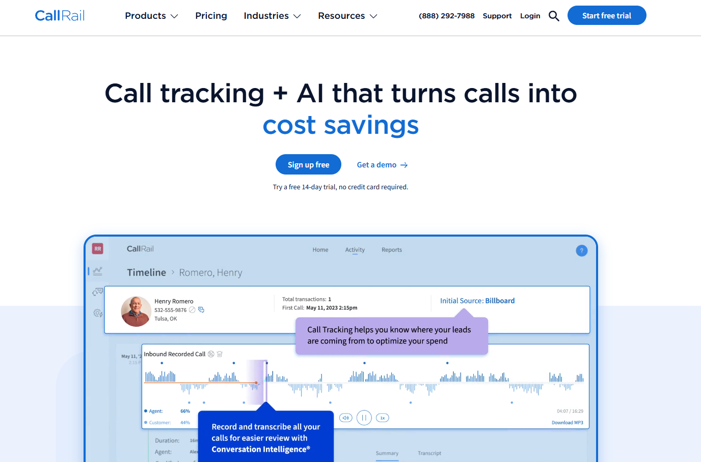CallRail هي منصة قوية مصممة بشكل أساسي لتتبع المكالمات وتسجيلها والتحليلات، مما يجعلها مفيدة بشكل خاص للشركات التي تتطلع لإدارة العملاء المحتملين وتتبع أداء المكالمات الهاتفية. تلبي ميزاتها فرق التسويق والشركات التي تعتمد بشكل كبير على الاتصالات الهاتفية.