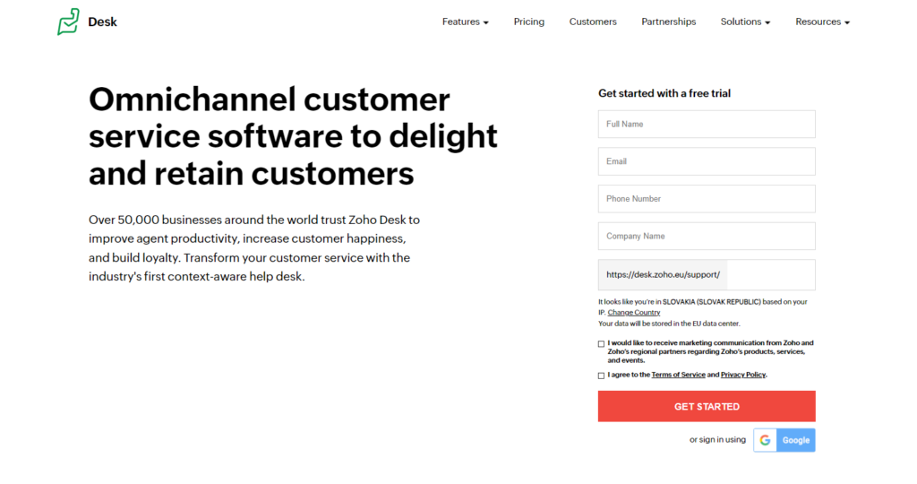 يدعم Zoho Desk فرق خدمة العملاء ومندوبي المبيعات كبرنامج لتجربة العملاء. كما يوفر منصة حجز لمساعدة العملاء على تحديد المواعيد.