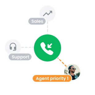 يقوم تطبيق مركز الاتصال الخاص بنا بتوزيع المكالمات وفقًا لأولوية الوكيل أو التعيين العشوائي. اختر الإعداد الذي يناسبك ، بالإضافة إلى الإعدادات المخصصة مثل أوقات الإيقاف المؤقت.