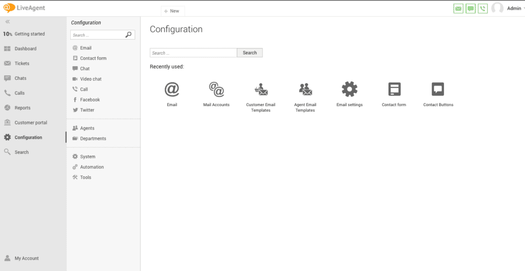 عندما يقوم الوكلاء بتسجيل الدخول إلى LiveAgent الخاصة به ، يمكنهم إدارة العديد من الأشياء من لوحة الوكيل. إنهم قادرون على تنشيط المكون الإضافي وإنشاء التذاكر وإدارتها واستبدال شعار LiveAgent الافتراضي وإنشاء مستخدم جديد وتعديل المؤسسات وغير ذلك الكثير. بحيث يمكن بدء جلسات الدردشة بسهولة مباشرة من لوحة الوكيل. كل شيء يتركز في مكان واحد. توجد لوحة الوكيل على الجانب الأيسر من نافذة LiveAgent. إنه سهل الاستخدام وواضح وبسيط.