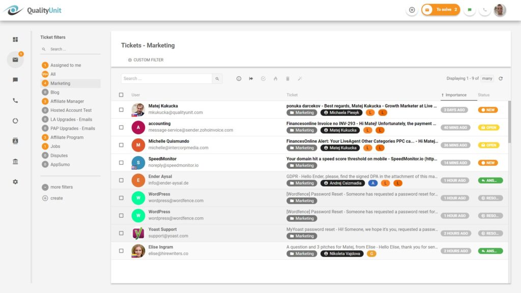 يعد الرد على رسائل Instagram من خلال LiveAgent أكثر أمانًا. لماذا؟ حيث أن تذاكر Instagram يتم تخزينها في صندوق بريد وارد عام مشترك يمكن الوصول إليه من قبل كل وكيل دعم. هذا يعني أنه لا داعي للقلق بشأن: