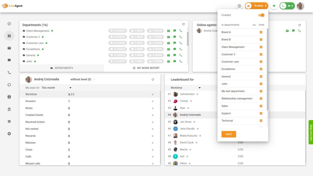 بالإضافة إلى ذلك، من خلال دور المسؤول، يمكنك إعداد زر للحل “To Solve” الخاص بك لعرض تذاكر الدعم التي لم يتم الرد عليها بترتيب الأهمية (أولوية التذكرة، وقت الإستلام، اتفاقيات مستوى الخدمة “SLAs”.)