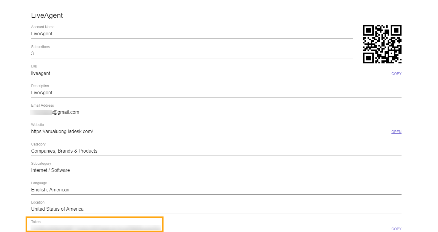 5. انسخ الرمز المميز(token) ثم سجّل الدخول إلى LiveAgent.